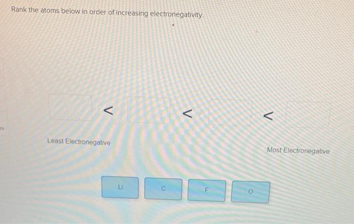 Rank the Atoms Below in Order of Increasing Electronegativity